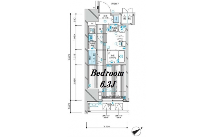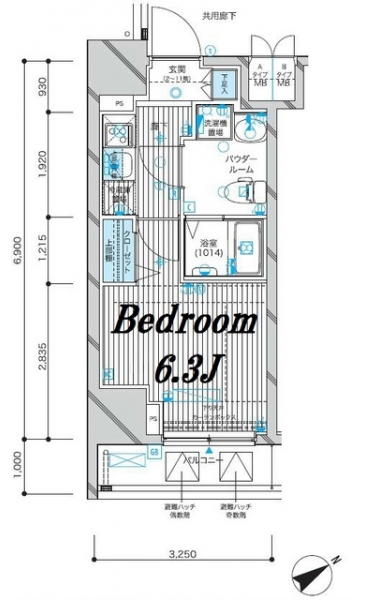 K 2 畳 洋室 6.3 畳 |