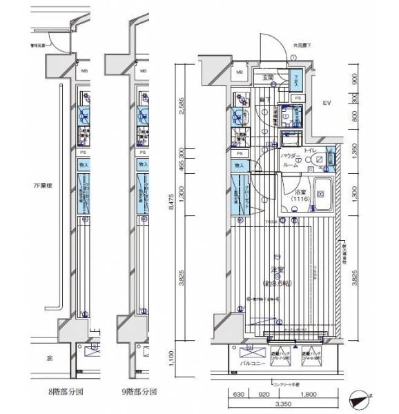 | 間取り | 1K | 階建 | ***/9階建 |