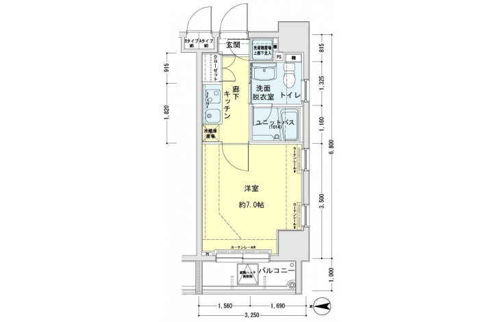 K 2 畳 洋室 7 畳 |