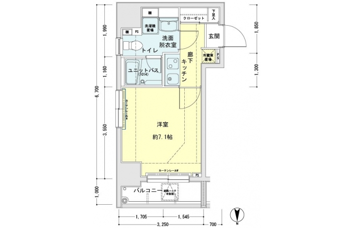 K 2 畳 洋室 7.1 畳 |