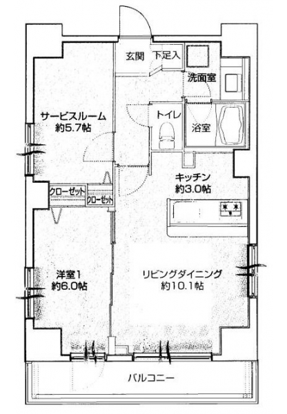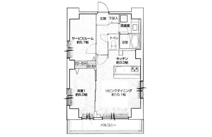 LDK 10.1 畳 洋室 6 畳 洋室 5.7 畳 |