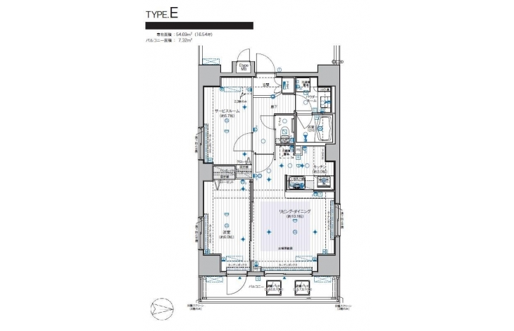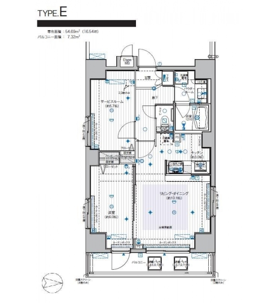 | 専有面積 | 54.69m² | バルコニー面積 | |