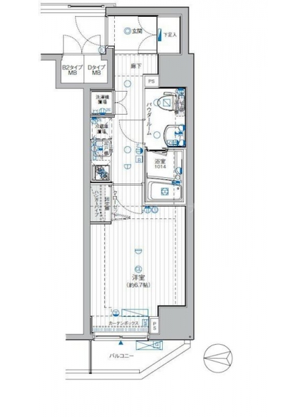 K 2 畳 洋室 6.7 畳 |