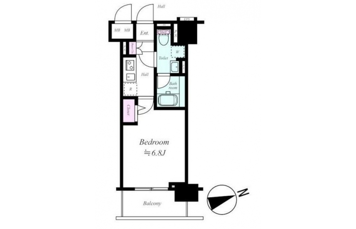 K 2 畳 11 階 洋室 6.8 畳 11 階 |