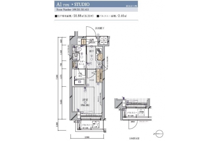 | 専有面積 | 20.88m² | バルコニー面積 | |