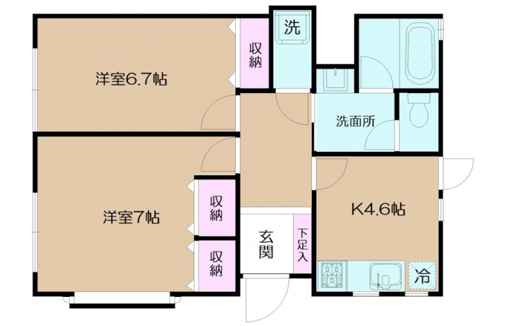 K 4.6 畳 洋室 6.7 畳 洋室 7 畳 |