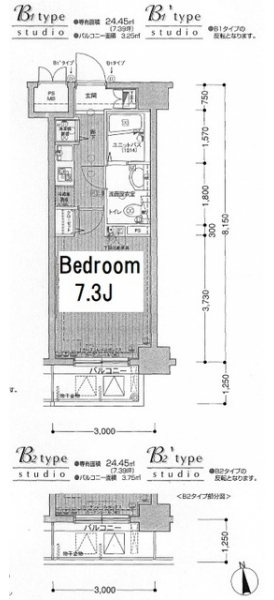 | 専有面積 | 24.45m² | バルコニー面積 | |