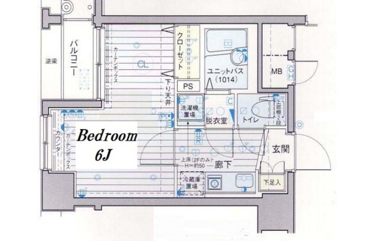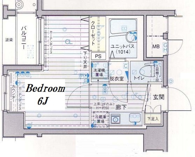 K 2 畳 洋室 6 畳 |
