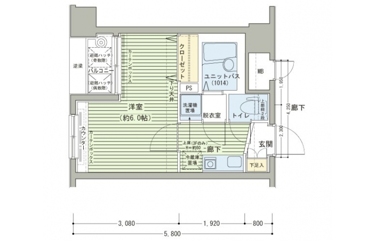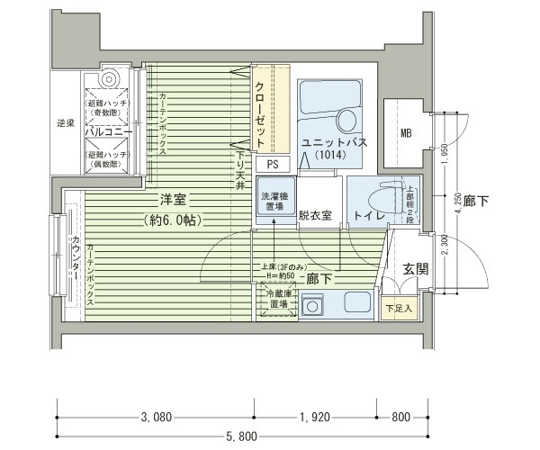 K 2 畳 洋室 6 畳 |