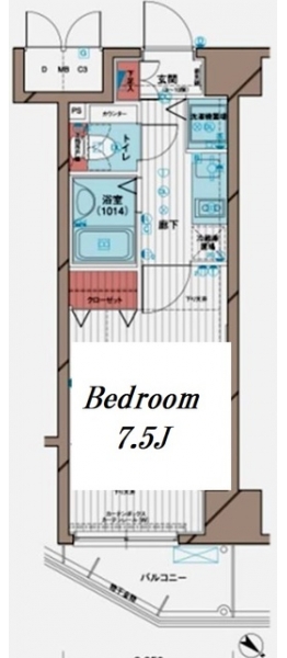 | 間取り | 1K | 階建 | ***/14階建(B1階) |