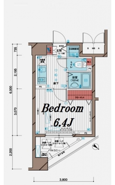 K 2 畳 洋室 6.4 畳 |