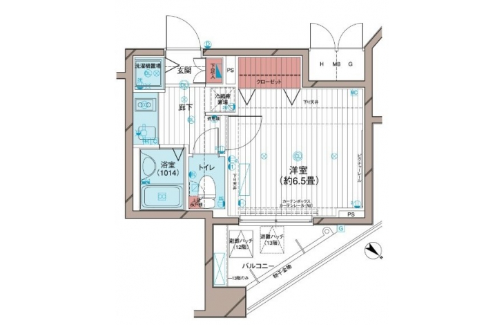 | 間取り | 1K | 階建 | ***/14階建(B1階) |