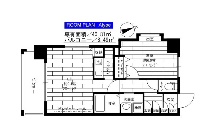 | 専有面積 | 40.81m² | バルコニー面積 | |