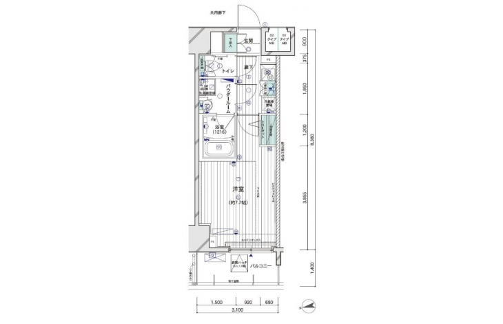 | 専有面積 | 25.97m² | バルコニー面積 | |