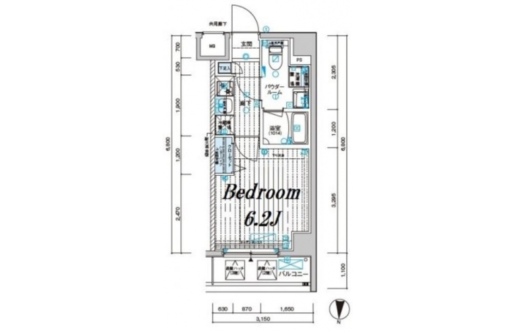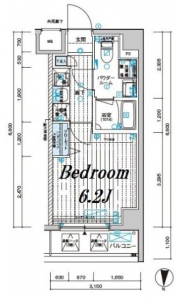K 2 畳 洋室 6.2 畳 |