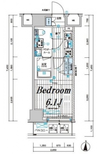 K 2 畳 洋室 6.1 畳 |