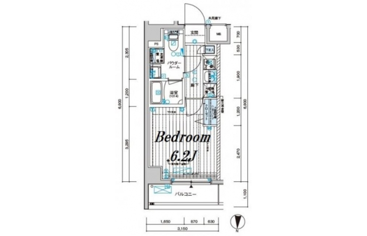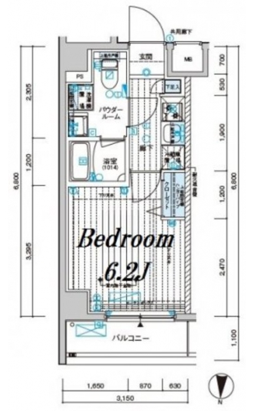 K 2 畳 洋室 6.2 畳 |