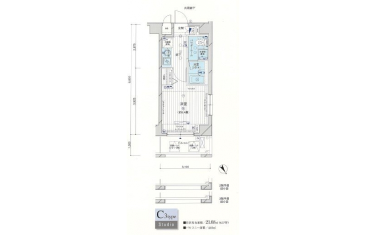 | 専有面積 | 21.08m² | バルコニー面積 | |
