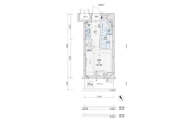 | 専有面積 | 21.08m² | バルコニー面積 | |