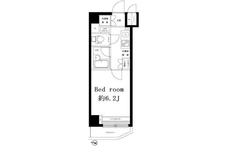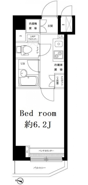 K 2 畳 洋室 6.2 畳 |