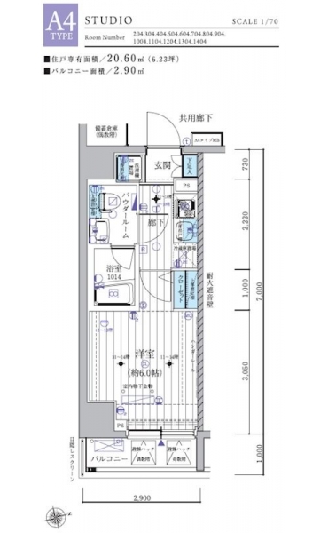 | 専有面積 | 20.60m² | バルコニー面積 | 2.90m² |