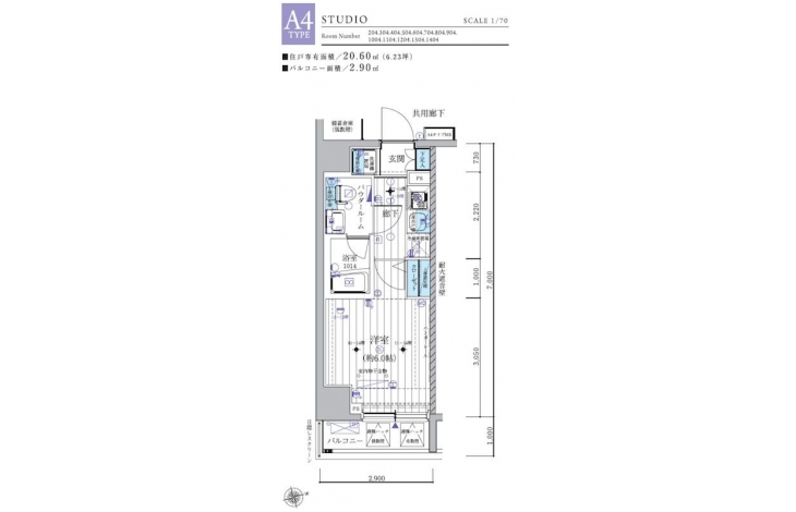 | 専有面積 | 20.60m² | バルコニー面積 | |
