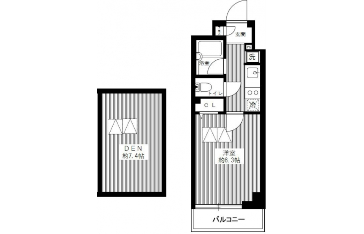 洋室 6.3 畳 1 階 K 2 畳 1 階 洋室 7.4 畳 |