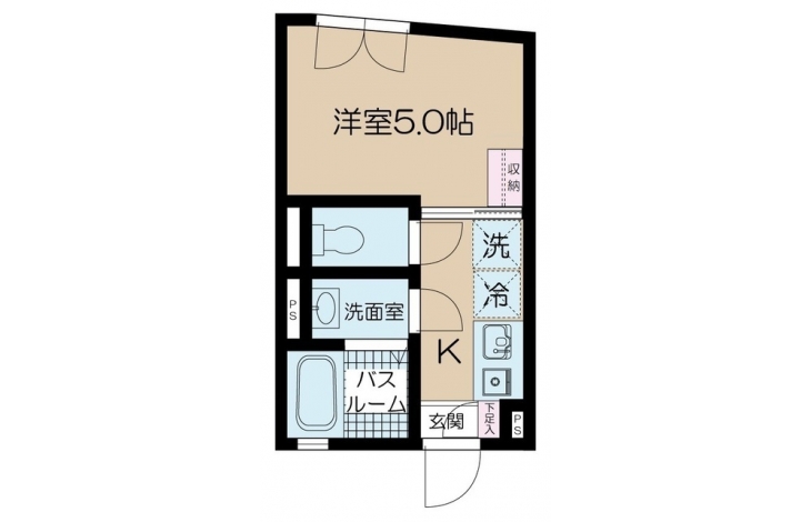 K 1.5 畳 洋室 5 畳 |