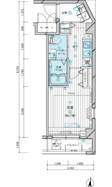 | 専有面積 | 24.88m² | バルコニー面積 | |