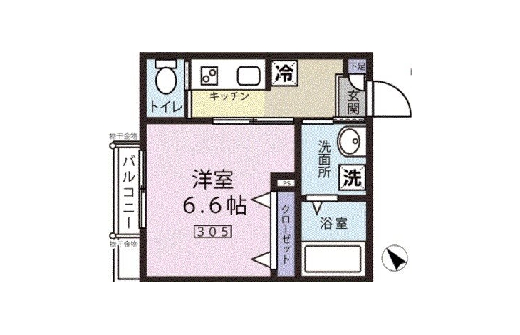 K 1.5 畳 洋室 6.6 畳 |