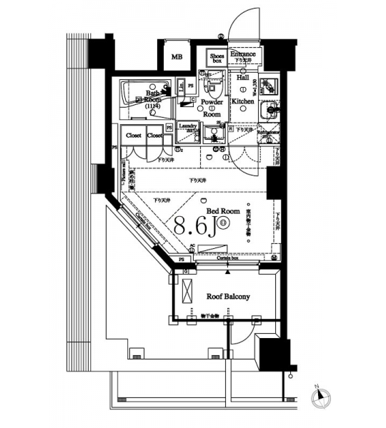 K 2 畳 洋室 8.6 畳 |