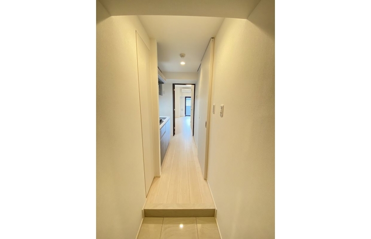 【エントランスホール】エントランス内に歩みを進めた瞬間、都会の喧騒とは無縁の静寂の世界へと誘われます。それはやわらかな照明の光につつまれた美しくエレガントな雰囲気が醸し出す、品格あるライフステージへのプロローグ。ここから始まる新たな都市生活に素敵な彩りを添えています。