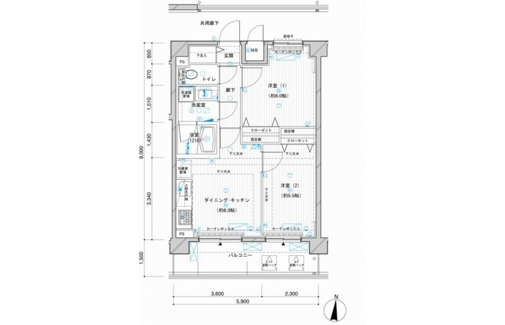 DK 8.3 畳 洋室 6 畳 洋室 5.5 畳 |