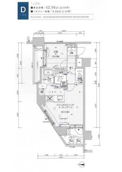 | 専有面積 | 42.50m² | バルコニー面積 | |