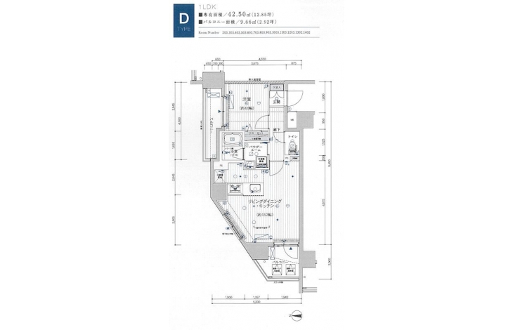 | 専有面積 | 42.50m² | バルコニー面積 | |