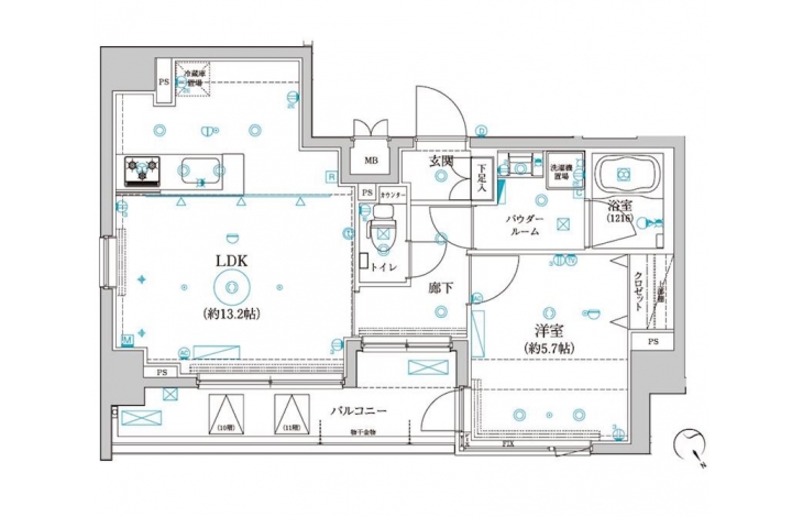 LDK 13.2 畳 洋室 5.7 畳 |