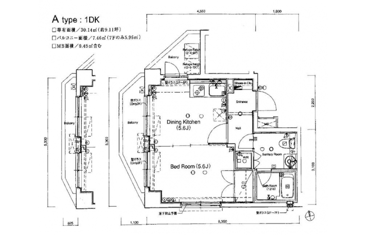 | 専有面積 | 30.14m² | バルコニー面積 | |