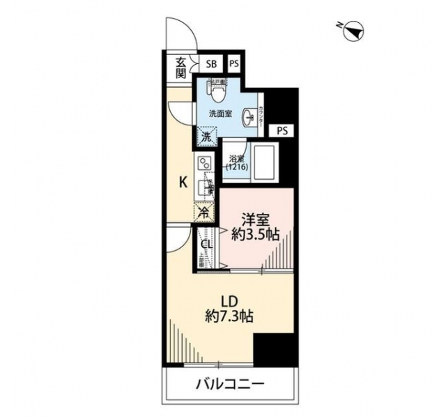 K 2.2 畳 LD 7.3 畳 洋室 3.5 畳 |