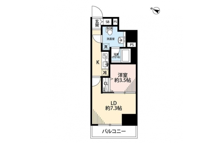 K 2.2 畳 LD 7.3 畳 洋室 3.5 畳 |