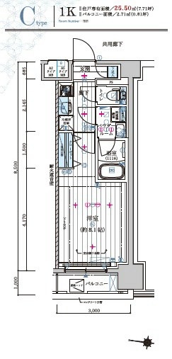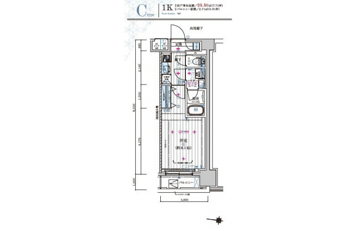 | 専有面積 | 25.50m² | バルコニー面積 | |