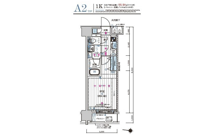 | 専有面積 | 25.50m² | バルコニー面積 | |
