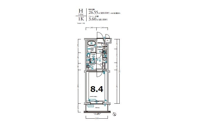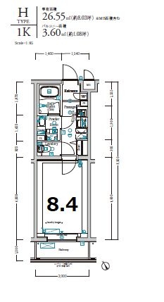 | 専有面積 | 26.55m² | バルコニー面積 | |
