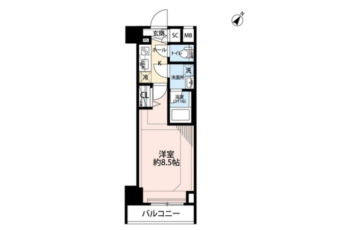 K 2 畳 洋室 8.5 畳 |