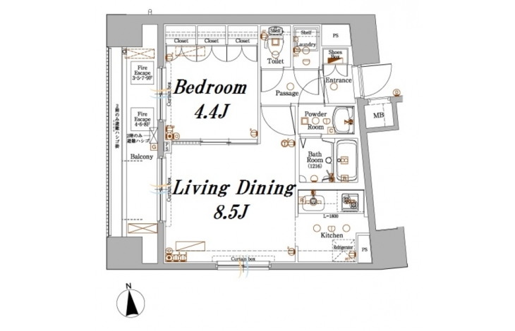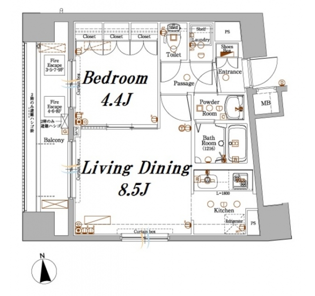 LD 8.5 畳 K 2 畳 洋室 4.4 畳 |