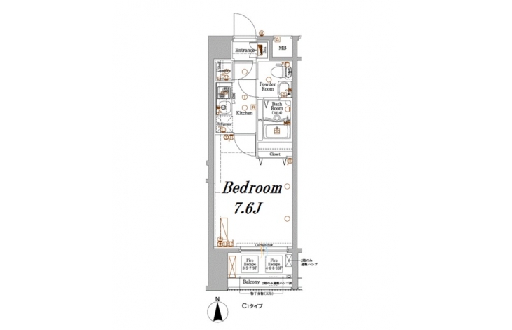 K 2 畳 洋室 7.6 畳 |