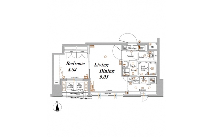 LD 9 畳 K 2 畳 洋室 4.8 畳 |