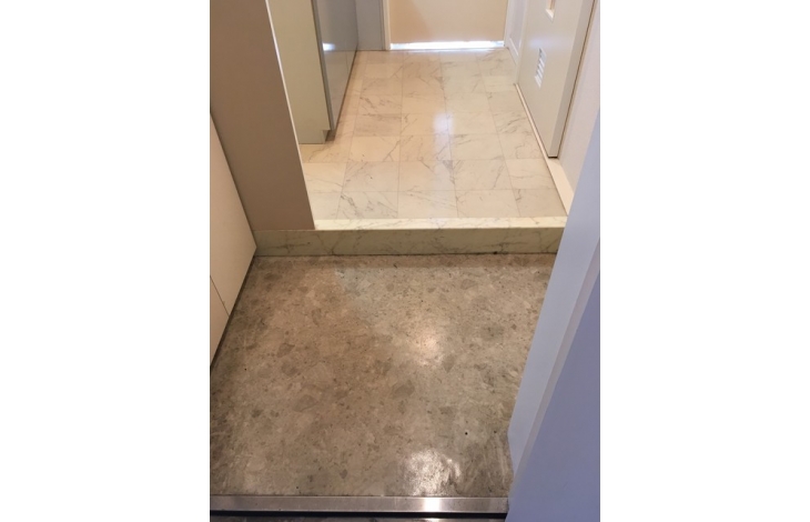 【エントランスロビー】内外部の壁面には色合いや質感に優れた高級感あふれる面材をふんだんに使用、プライベートエリアへのプロローグを上品に、そしてドラマティックに演出します。