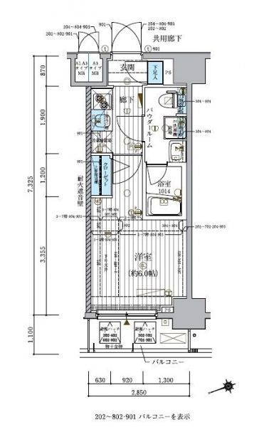 | 専有面積 | 20.87m² | バルコニー面積 | |