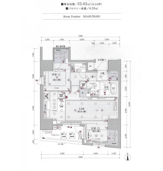 | 専有面積 | 55.03m² | バルコニー面積 | |