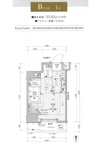 | 専有面積 | 25.63m² | バルコニー面積 | |